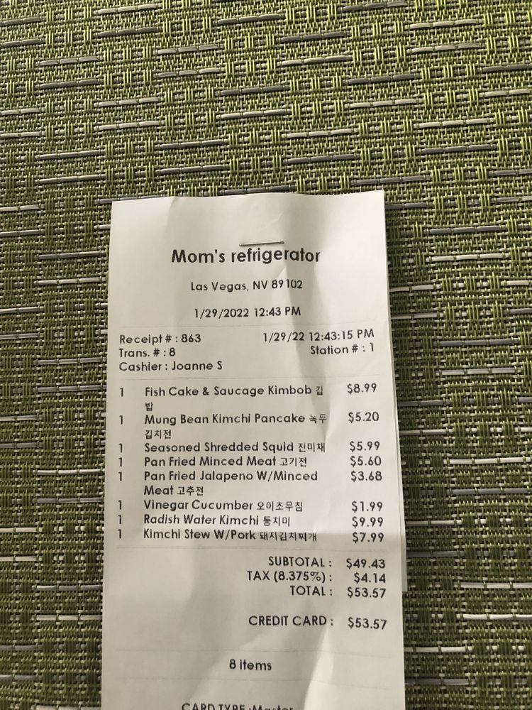 Introducing "Mom’s Refrigerator", a Korean restaurant located at 3375 S Decatur Blvd in Las Vegas. This Asian and women-owned establishment offers a wide range of dining options, including delivery, takeout, catering services, and reservations. With wheelchair accessibility, quiet ambiance, outdoor seating, and a full bar offering alcoholic beverages, Mom’s Refrigerator caters to a diverse clientele. The menu features authentic Korean dishes prepared with care and attention to detail. From traditional favorites like bibimbap and bulgogi to unique creations, each dish reflects the culinary heritage of Korea. Whether you're a fan of Korean cuisine or looking to explore new flavors, Mom’s Refrigerator promises a memorable dining experience. Don't miss the opportunity to savor the flavors of Korea at this inviting restaurant.